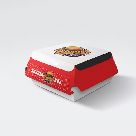 Eco-friendly clamshell packaging for burgers, sandwiches, and meals on the go.